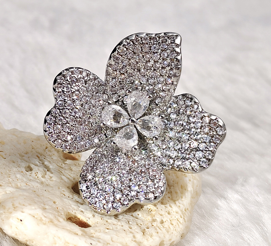 - N250575◆Bigstone◆【バラのデザイン】ロマンチックな印象*魅力的な光沢*欧米大人気なリング 12~15号 フリー