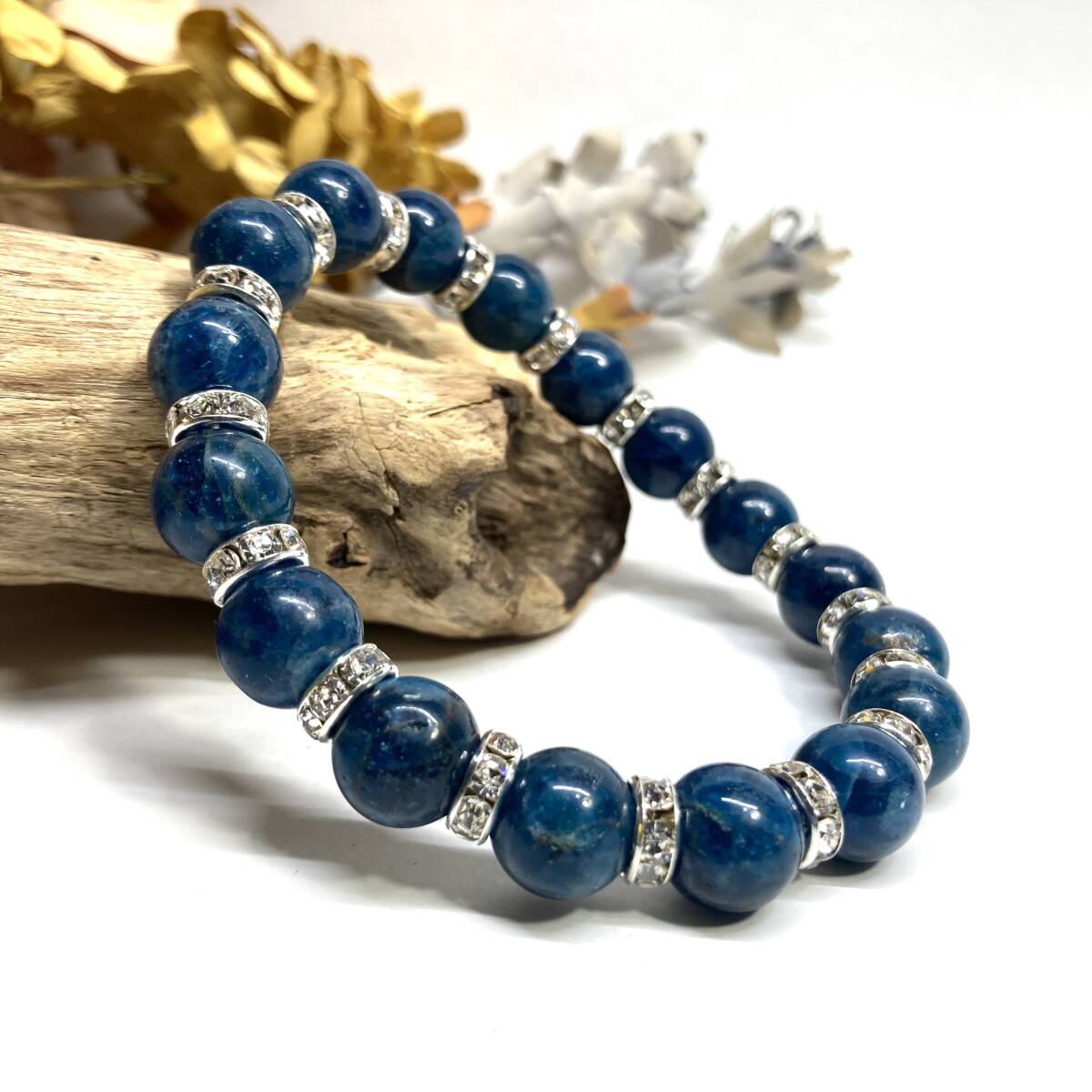 - アパタイト パワーストーン ブレスレット 天然石ブレス 10mm メンズ・レディース (ロンデル:シルバー) 開運 浄化 数珠ブレス♪