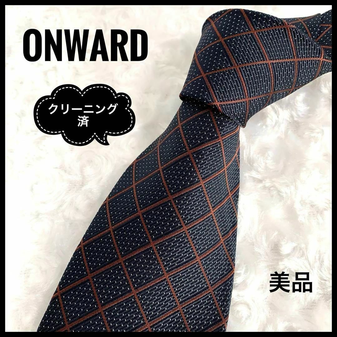 - 美品 ONWARD オンワード樫山 ネクタイ ネイビー /ブラウン ダイヤ柄