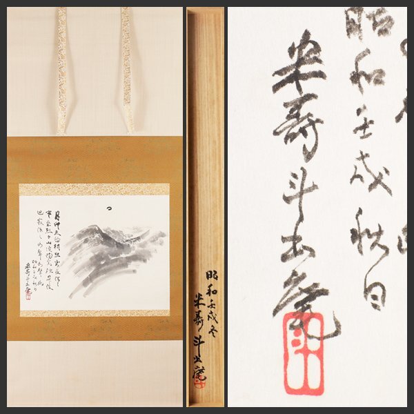 - ★【古美味】人間国宝 米寿 荒川豊蔵 自画賛「月伴天悠…」山頂陶窯之図 軸装 茶道具 保証品 Qc3C