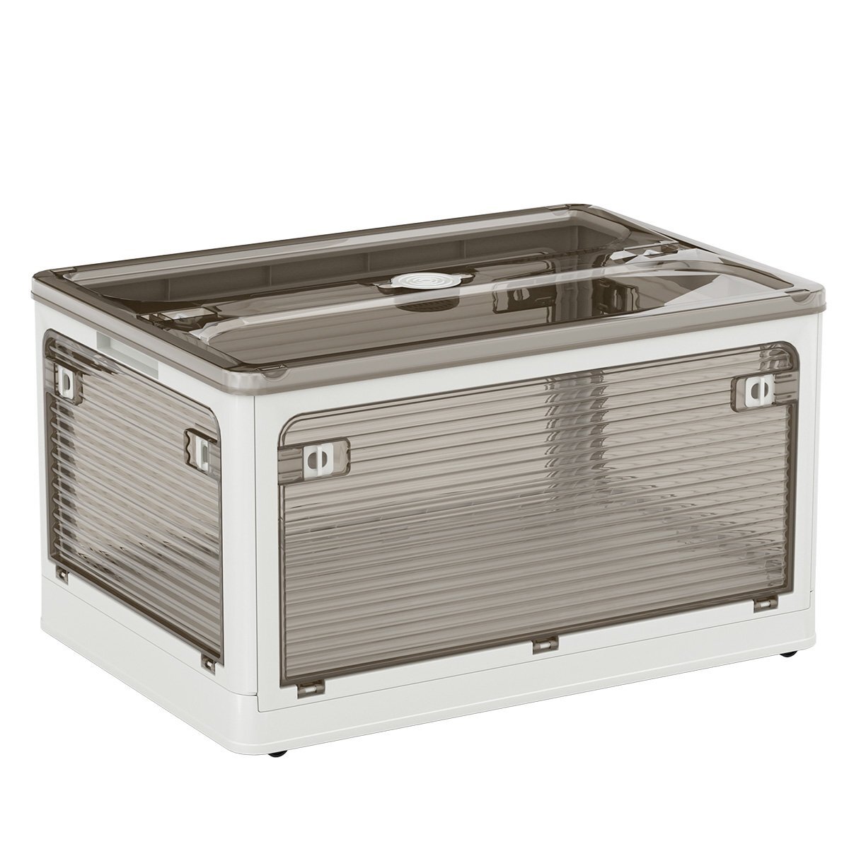 - セール!折りたたみ式 収納ケース 収納ボックス 21L 大容量 蓋付き キャスター付き 透明 衣類収納5面開き /SS ホワイト【送料無料】