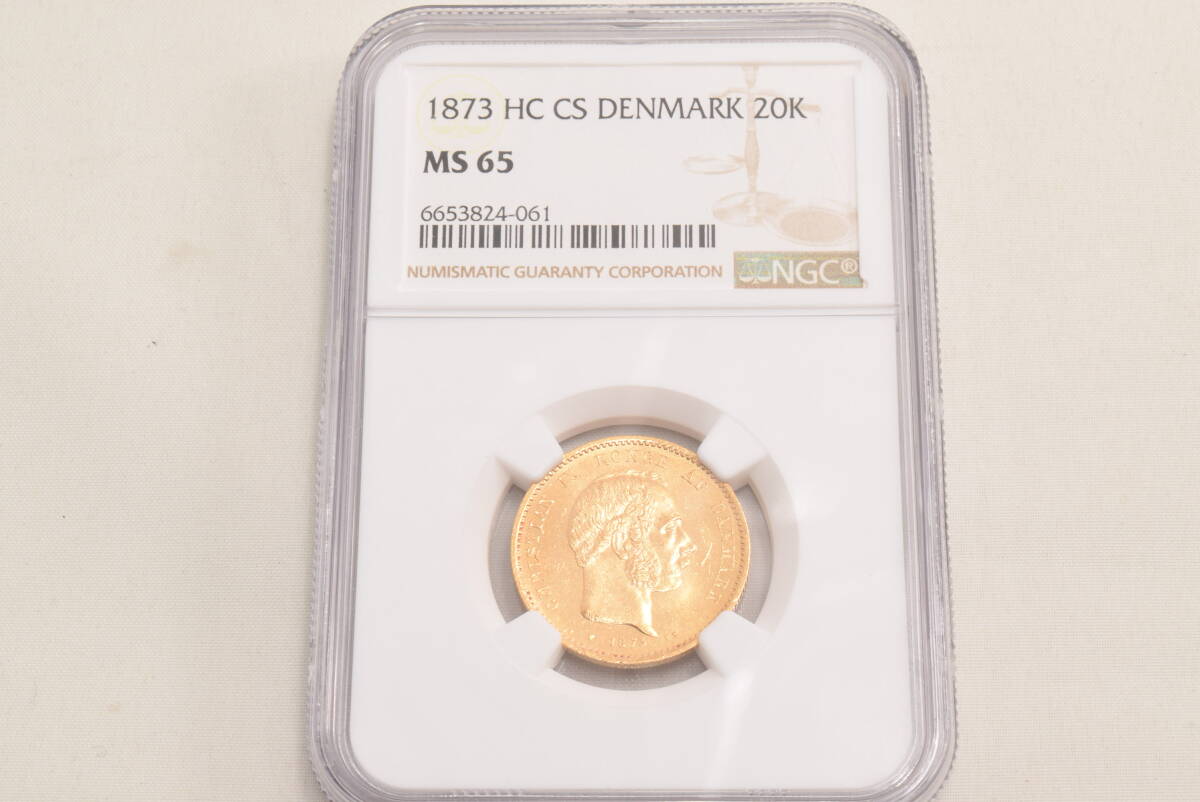 - デンマーク 1873年 20クローネ金貨 クリスチャン9世 NGC MS65