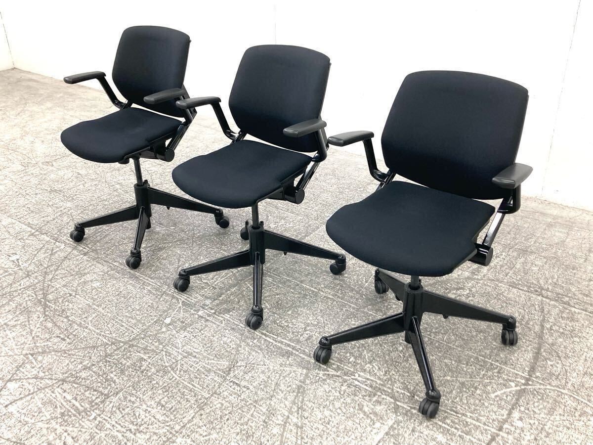 - ★rrst179F★ VECTA/ヴェクタ カートチェア 3脚セット 会議 打ち合わせ ブラック ミーティングチェア ネスティング オフィス