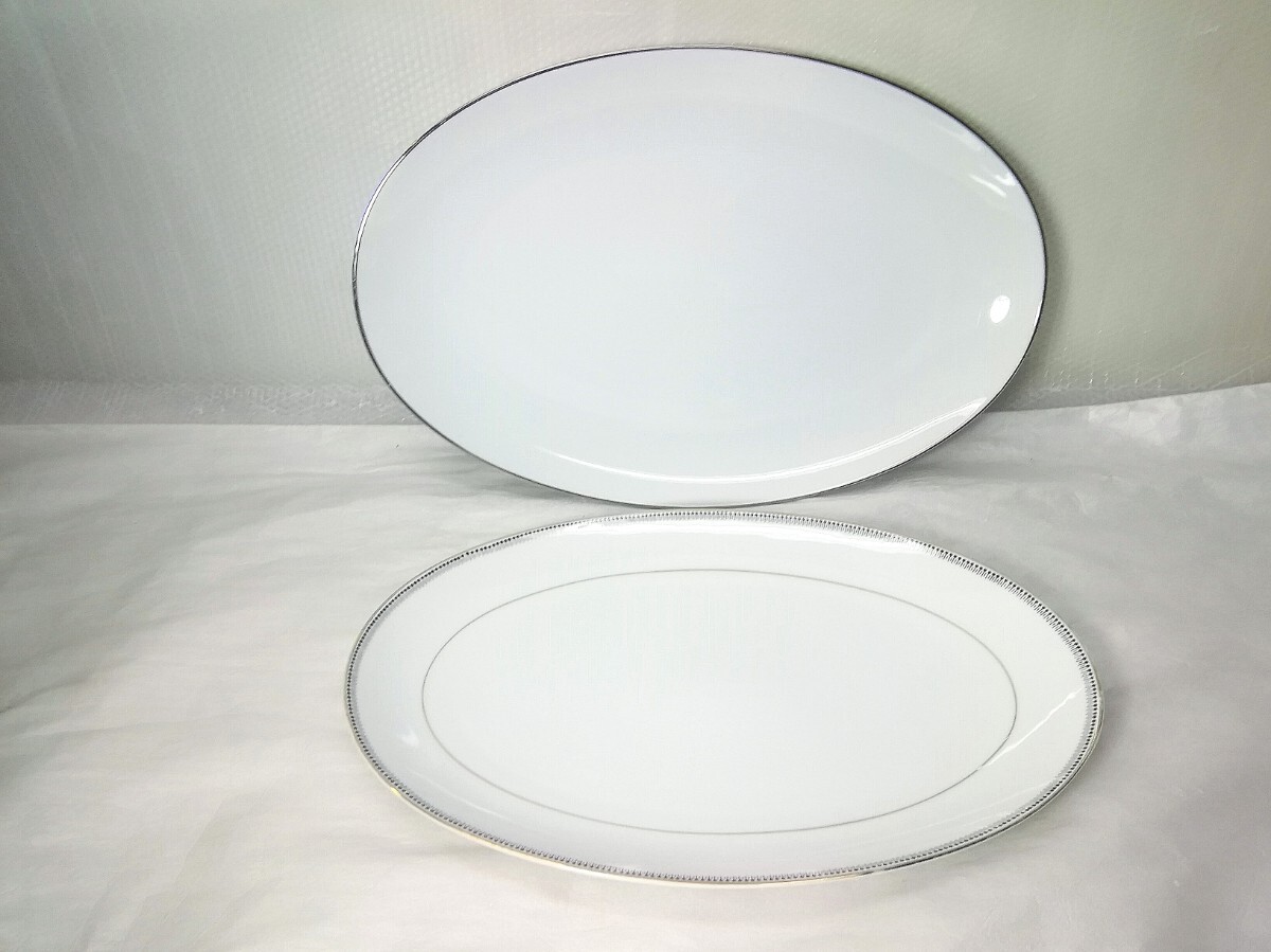 > Noritake ノリタケ オールドノリタケ皿 楕円形 大皿 他 2枚セット 金縁/銀縁 NIPPON TOKI KAISHA 長皿プレート皿 日本陶器 中古品