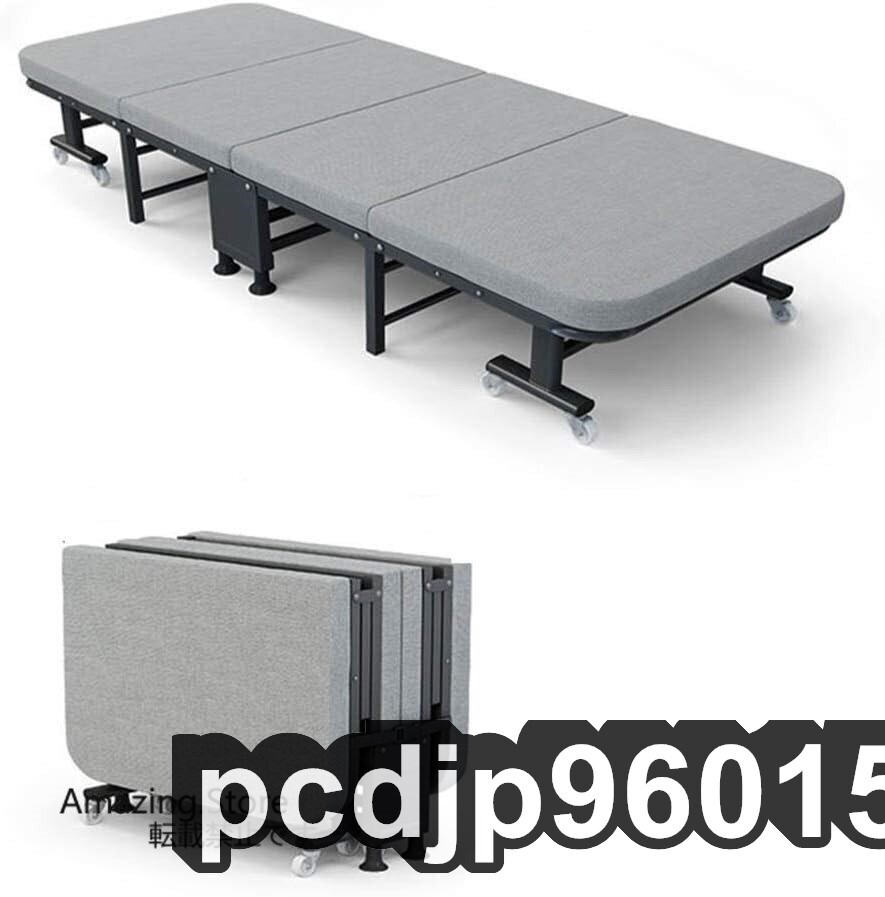 - 折りたたみベッド リクライニングベッド 組立不要 簡易ベッド マットレス一体型 四つ折り シングル 携帯便利 簡単収納【幅80cm】