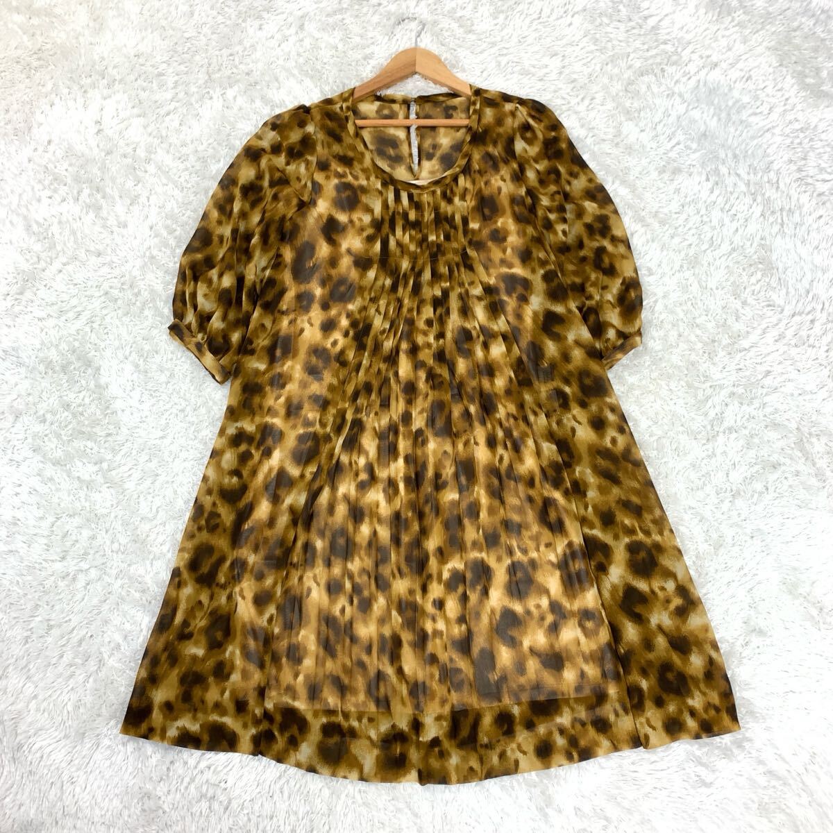 > Noble ノーブル ワンピース シフォンワンピース ギャザー ヒョウ柄 キャミソール付 ブラウン ポリエステル YA9305