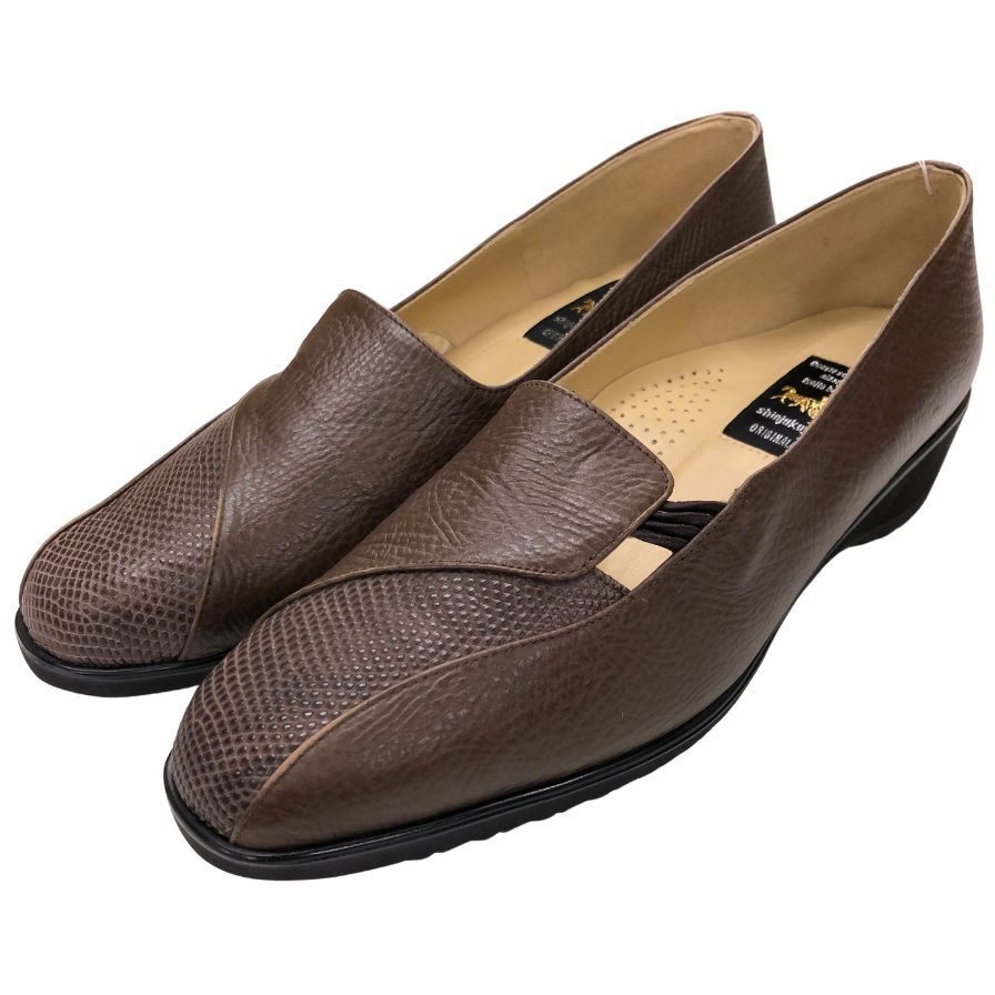 - 新宿屋 レザーパンプス マットトカゲ 3330-635 24.5cm レディース ブラウン shinjukuya 約24.5cm【7-19】