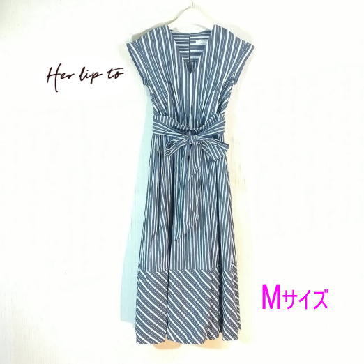 - Lover Back Ribbon Dress ワンピ-ス 袖なし ストライプ Her lip to