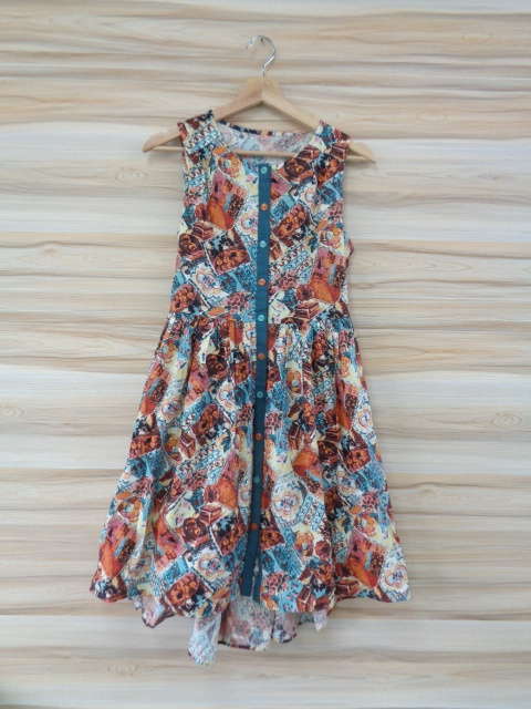 - 3172【本州のみ送料無料】Lois CRAYON ロイスクレヨン ワンピース ノースリーブ 総柄 日本製 綿100% サイズM
