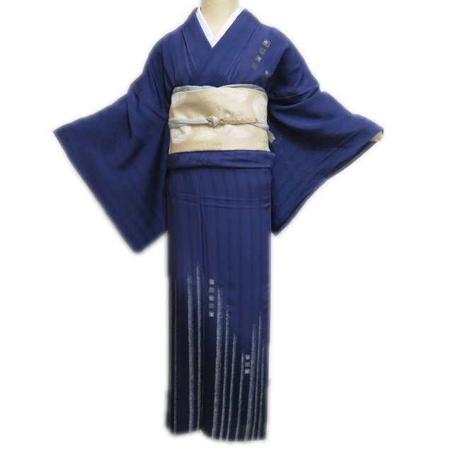 > 特選 夏物 夏着物 付下げ 付け下げ 訪問着 着物 未使用 正絹 縦絽 暈し 暗めの青紫系色 多色 金 身丈162cm 裄69cm M きもの北條 A1191-11