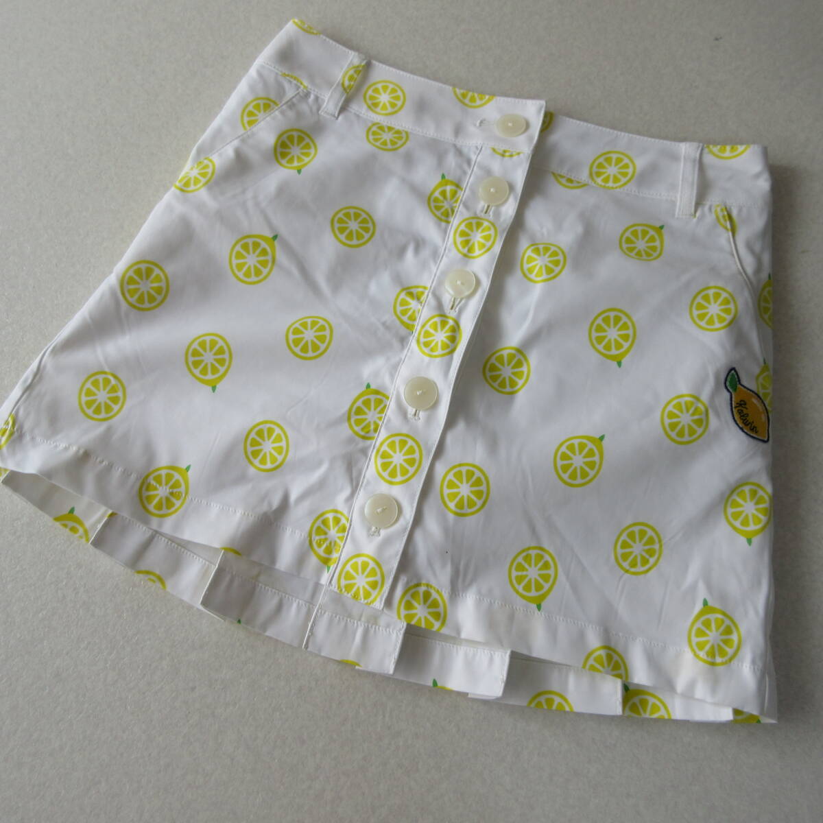 > ○試着のみ Kolwin コルウィン◆ゴルフウエア スカート 前開き 総柄 レモン◆レディース ホワイト/イエロー サイズ9