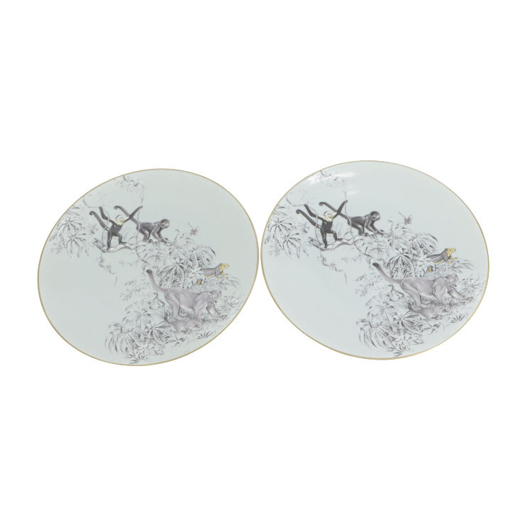 - 新品未使用展示品 エルメス 赤道直下のスケッチ 食器 陶磁器 日本未入荷 サービング プレート 大皿 2点セット【本物保証】
