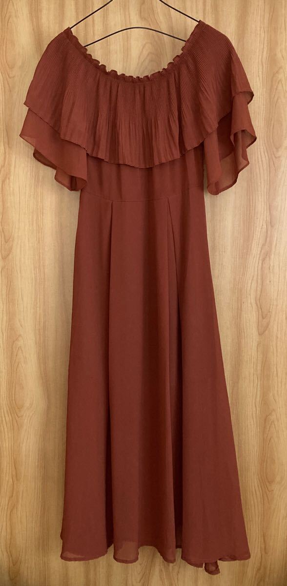- ◆超美品◆ ブラウン シフォン素材 ロングワンピース 半袖