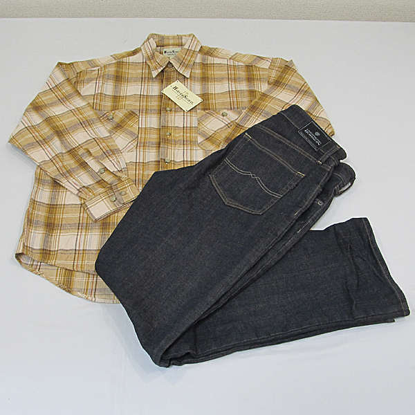 > BOBSON ボブソン ストレッチデニム W35 濃紺+WARVER SHARAY シャツ L/2点まとめて シャツにシミあり