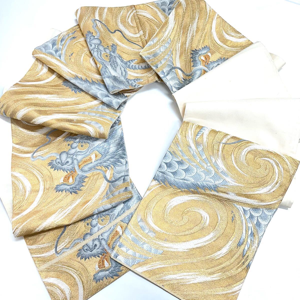 - 【七福】c544 逸品 高級品 正絹 袋帯 六通 龍 金糸 刺繍 豪華