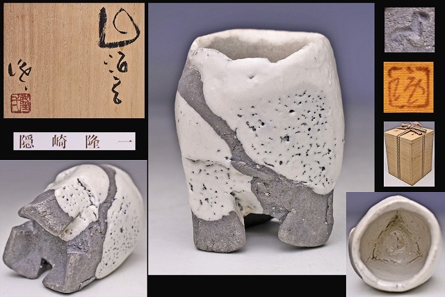 > 隠崎隆一 ★ 白ぐい呑 ★ 共箱 共布 栞 ★ 師: 人間国宝 伊勢崎淳 ★ 独創的なフォルム ★ 味わい深く存在感ある逸品 ★ 酒器 ★ 酒杯 ★