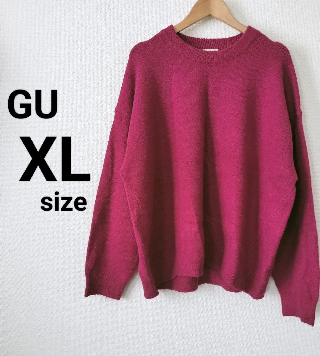 > XL オーバーサイズクールネックセーター ゆったり セーター GU ニット マゼンダ色 ピンク ルビー色 ジーユー パープル系 丸首