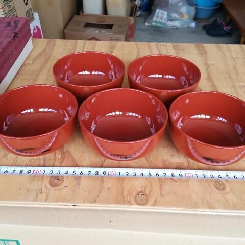 - 根来塗 お椀5客セット 汁椀 和食器 伝統工芸 紙共箱付