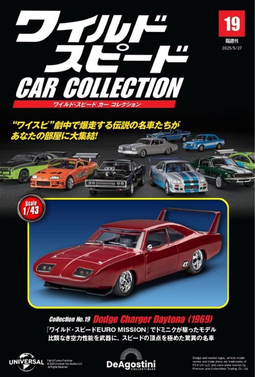 > ワイルドスピード カー コレクション 19号 ダッジチャージャー デイトナ 1969 応募券無 未使用 正規品 デアゴ