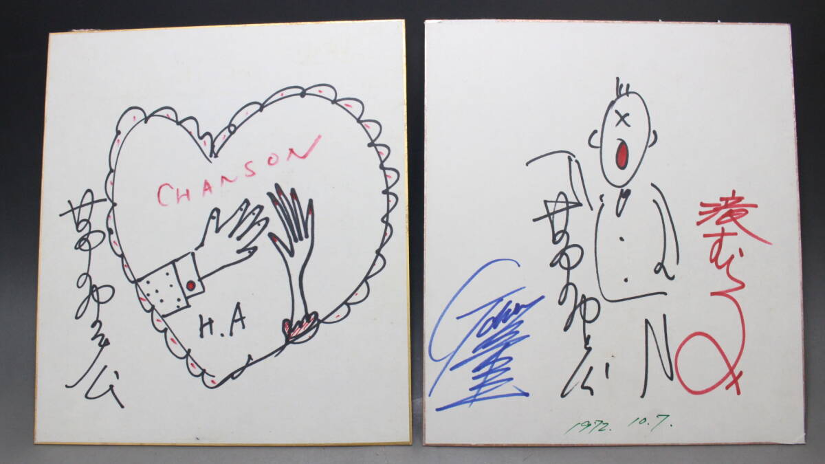 - 【文明館】芦野宏とシャンソンの会 肉筆色紙 2点セット 時代物 声楽家 日本音楽【真作】セ6