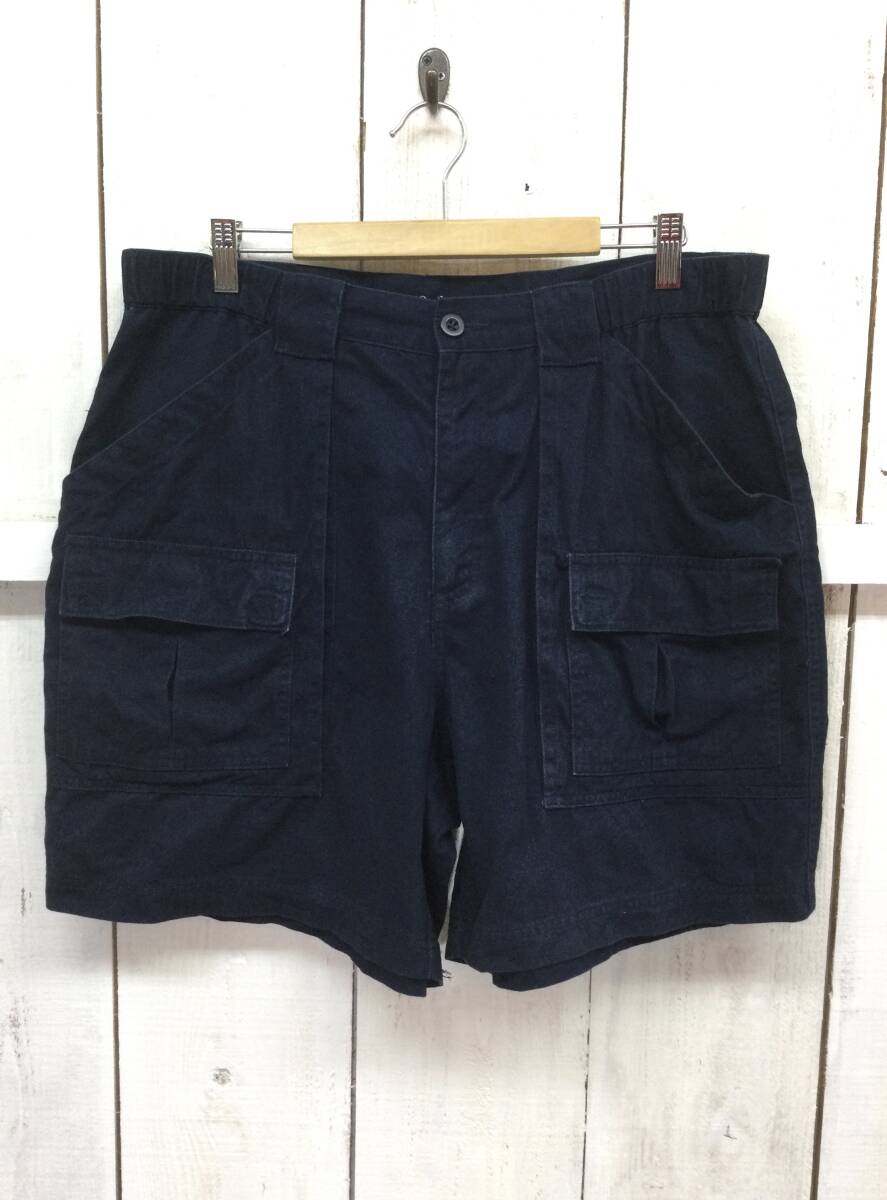 - W36 メンズ L〜XL 大きめ ネイビー系 Croft&Barrow ハーフパンツ コットンショーツ カーゴショーツ 短パン 【ややダメージあり】