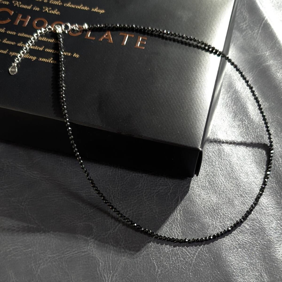 > アジャスターで長さ調節が可能 ブラックスピネル ネックレス 2.5mm キラキラ輝く宝石質のパワーストーン 生活に張りが出る お守り ギフト