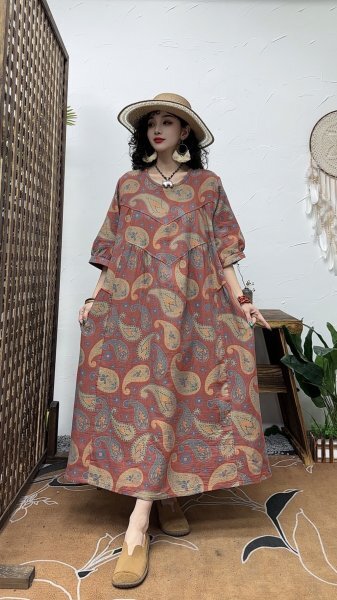 - mcc 0705 ワンピース ゆったり ふんわり アンティーク風 ロマンファッション 綿100% 七分袖 花柄10