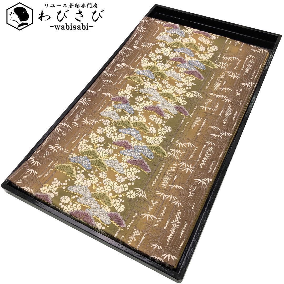 - 袋帯 麗粋唐織 松に竹 花模様 黄唐茶色 O-5067 着物 きもの kimono 和服 和装 中古 リサイクル着物 【送料無料】