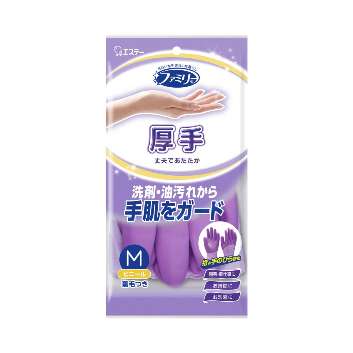 - ファミリー ビニール厚手 指・手のひら強化 Mパープル 容量1コ エステー 炊事手袋