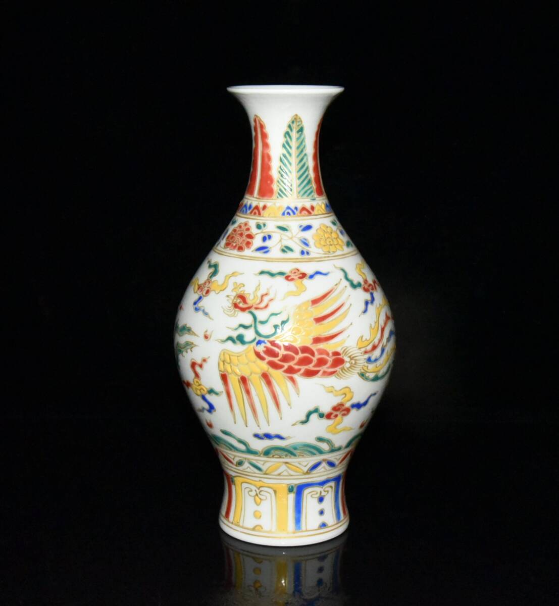 - 【仁】『明・成化年製款・古陶瓷品・五彩・描金・鳳紋・花瓶』極細工 古賞物 中国古玩 古美術 古美味