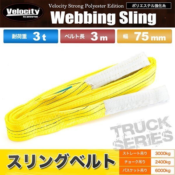 - スリングベルト 荷重3t ベルト長3m 幅75mm 両端アイタイプ