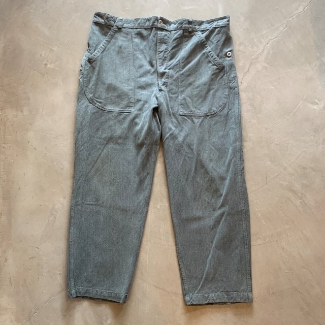 > 【W42】スイス軍 グリーンデニム ワーク オーバーパンツ■ビンテージ ヨーロッパ古着 ユーロミリタリー ベイカー メタルボタン 50s No.1