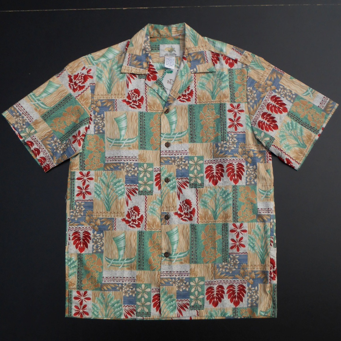 > 未使用 '90s TWO PALMS HO ALOHA 半袖 ハワイアンシャツ S アロハ デッドストック ヴィンテージ トゥーパームス HAWAII ハワイ製 ベージュ
