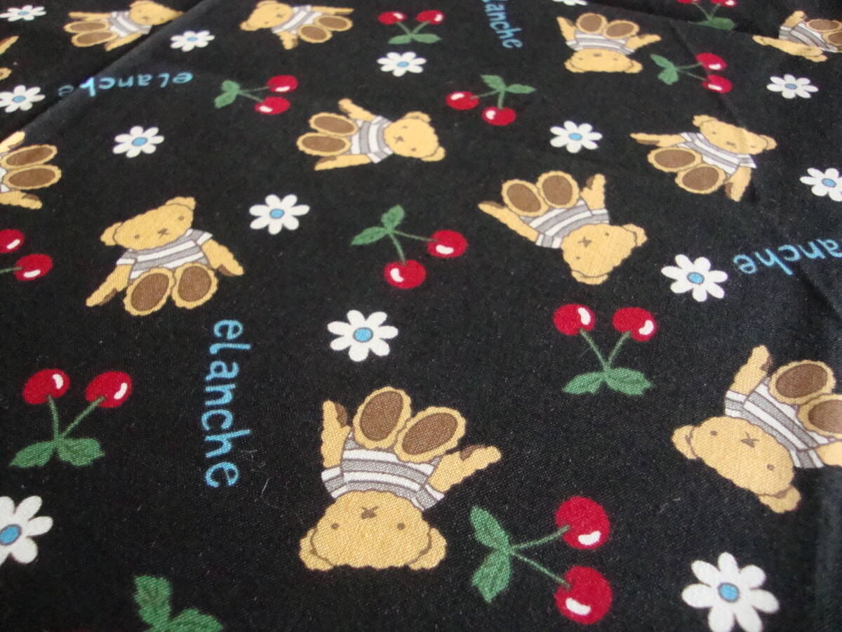 - KOKKA EL ANCHE エルアンシュ ブロード W108×100cm 黒 Tシャツ くま テディベア さくらんぼ 花 綿 プリント 生地 はぎれ 日本製 最長2m