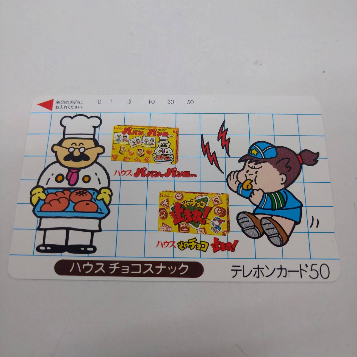 - 【希少】パパンがパン屋さん/そのチョコ止まれ! ハウス チョコスナック テレカ 50度【テレホンカード 当時物 コレクション レア 貴重】91