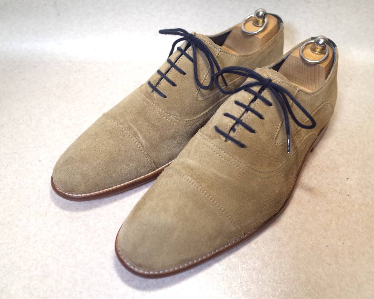 内羽根5アイレット キャップトゥ ストレートチップ スエードレザーシューズ。