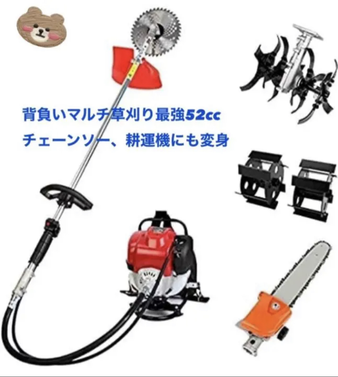 - 背負い 草刈機 チップソー ナイロンカッター チェーンソー 耕運機ローター 草刈りローター 5点セット 最強52ccエンジン
