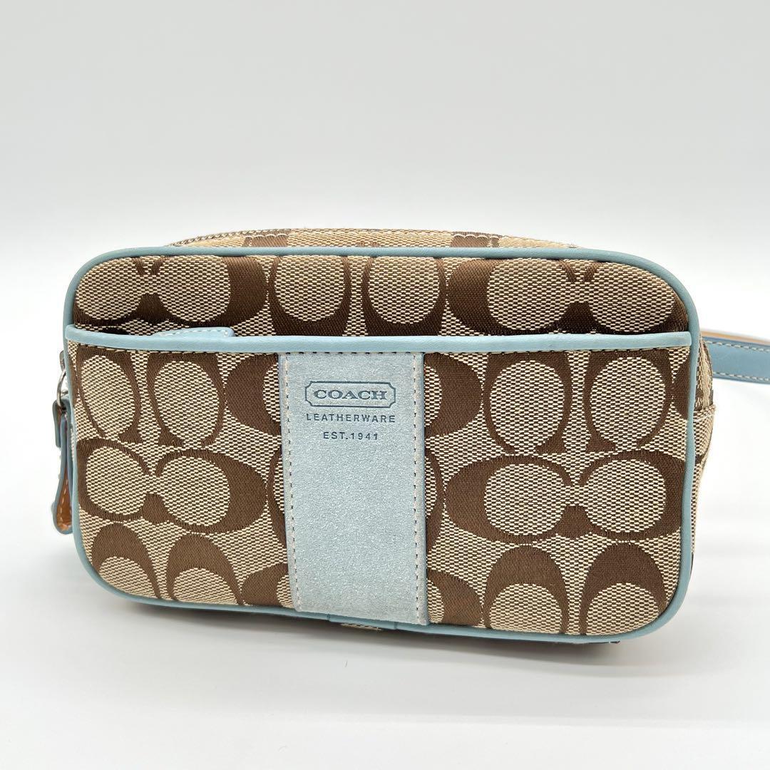 > 【美品】COACH コーチ シグネチャー ウエストポーチ ウエストバッグ ポシェット ミニバッグ レディース キャンバス ブラウン BJ670325D