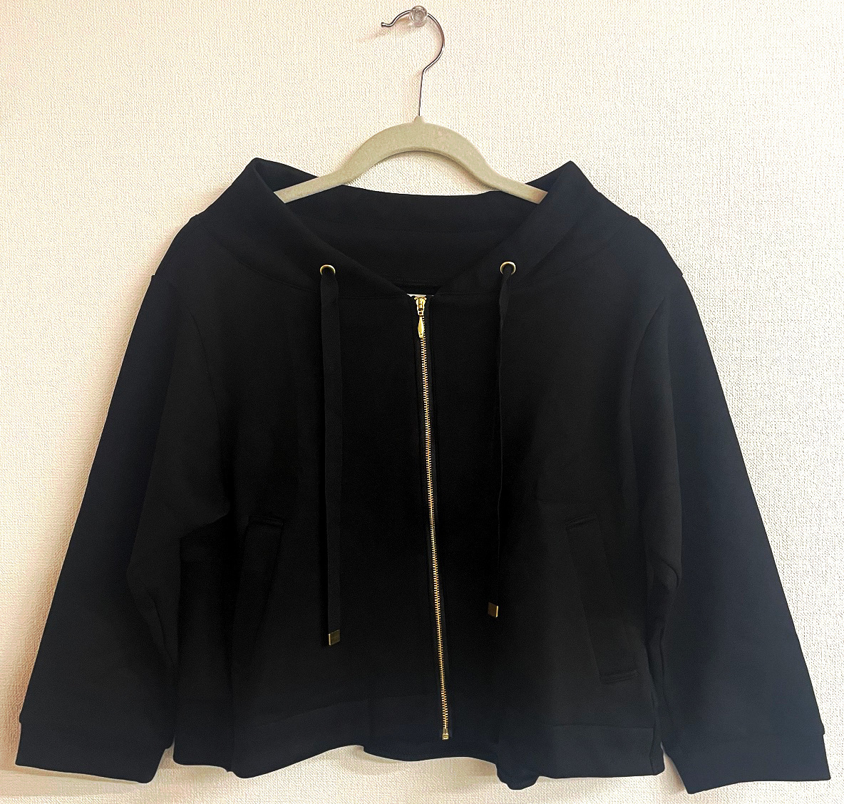 - レディース ジップアップ バックフリル ジャケット パーカー ブラック