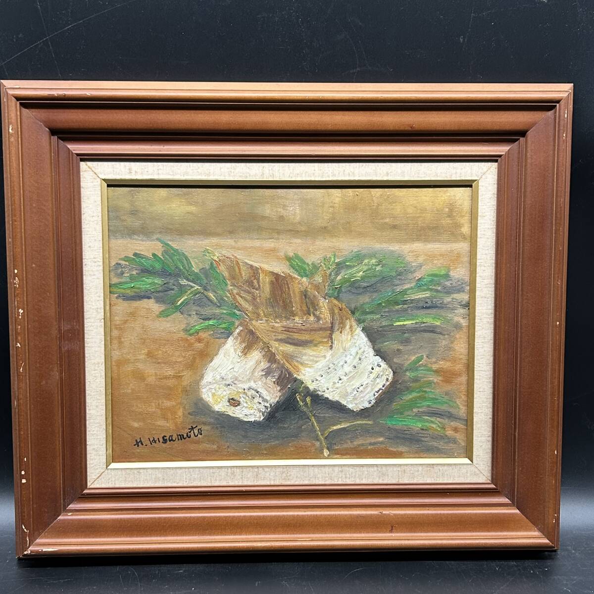 - 【模写】 油彩画 筍の絵 額 (約)縦52㎝×横61㎝×厚み6.5cm
