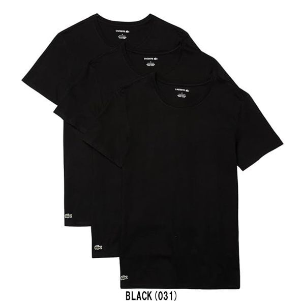 - ※訳あり アウトレット★2 LACOSTE(ラコステ)Tシャツ 肌着 インナー クルーネック 無地 3枚セット メンズ 男性用 TH3321 031 BLACK 黒 XS