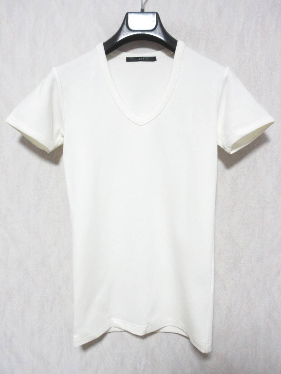- AKM DUAL WARM PLAIN 半袖 Vネック カットソー T022 メンズ S ホワイト yg7169