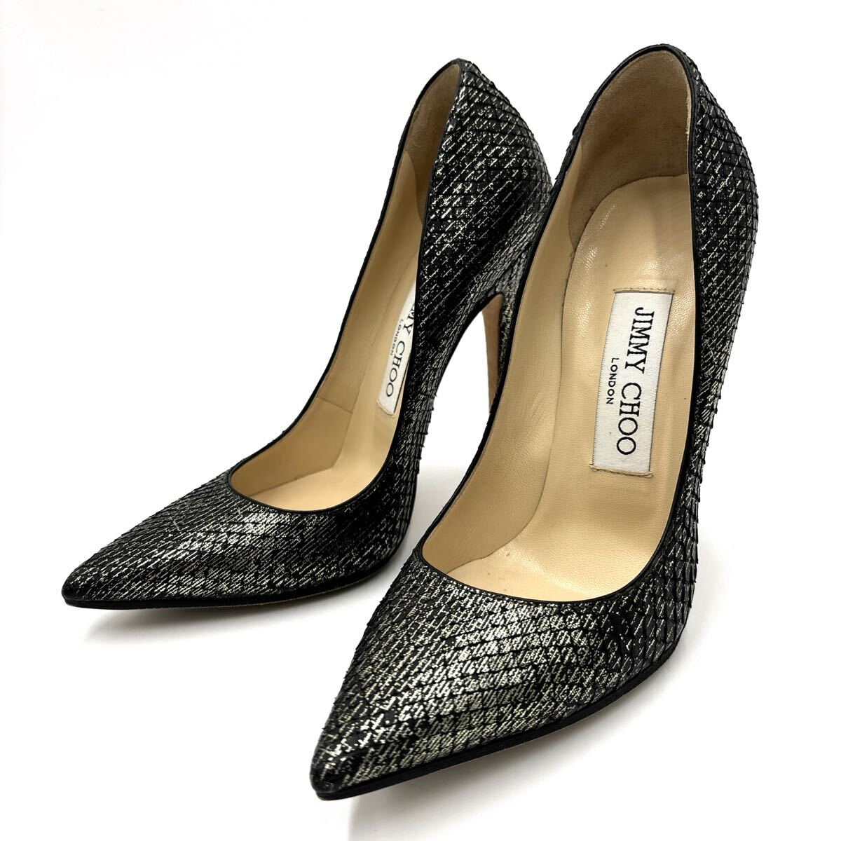 > B * 美品 イタリア製 '高級婦人靴' JIMMY CHOO ジミーチュウ 本革 パイソンレザー ヒール / パンプス 婦人靴 レディース シューズ