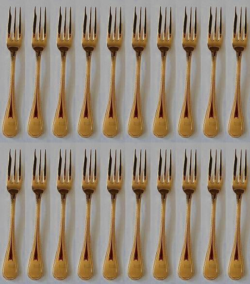 - ☆ラッキーウッド24金仕上フレンチアクセント ケーキフォーク 20P高級18-10ステンレス使用24金仕上日本製新品