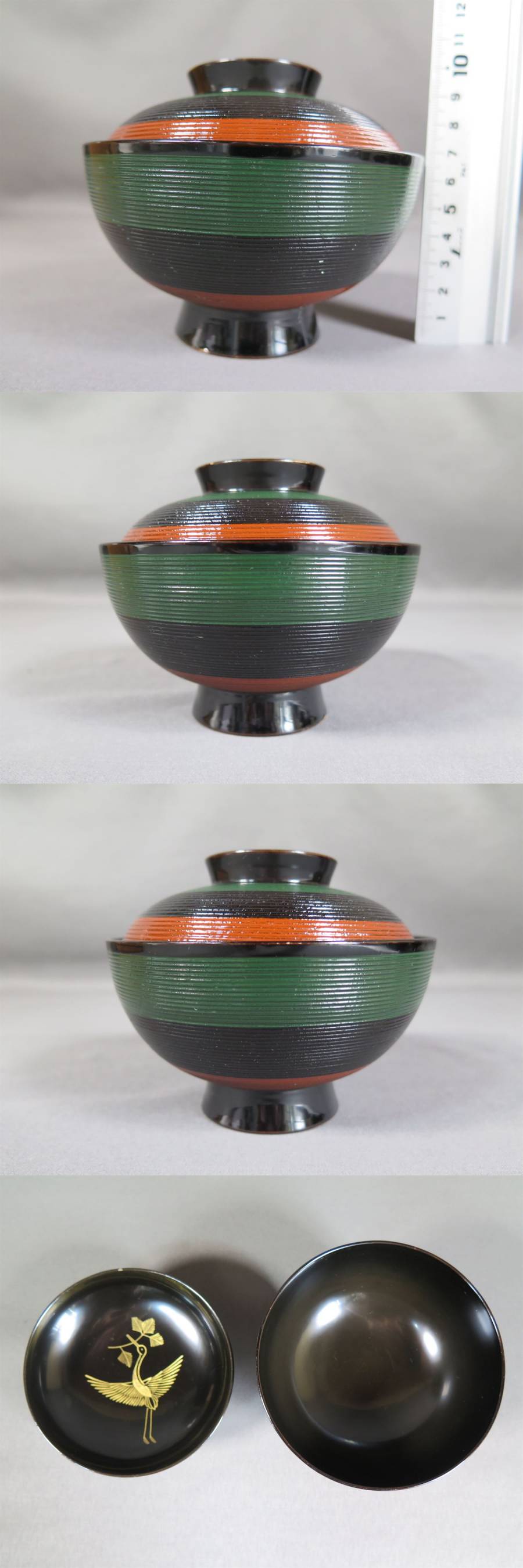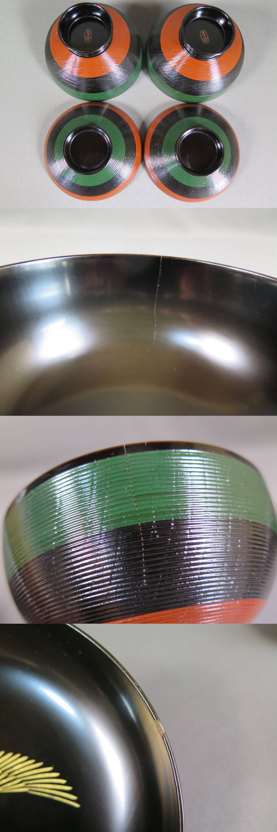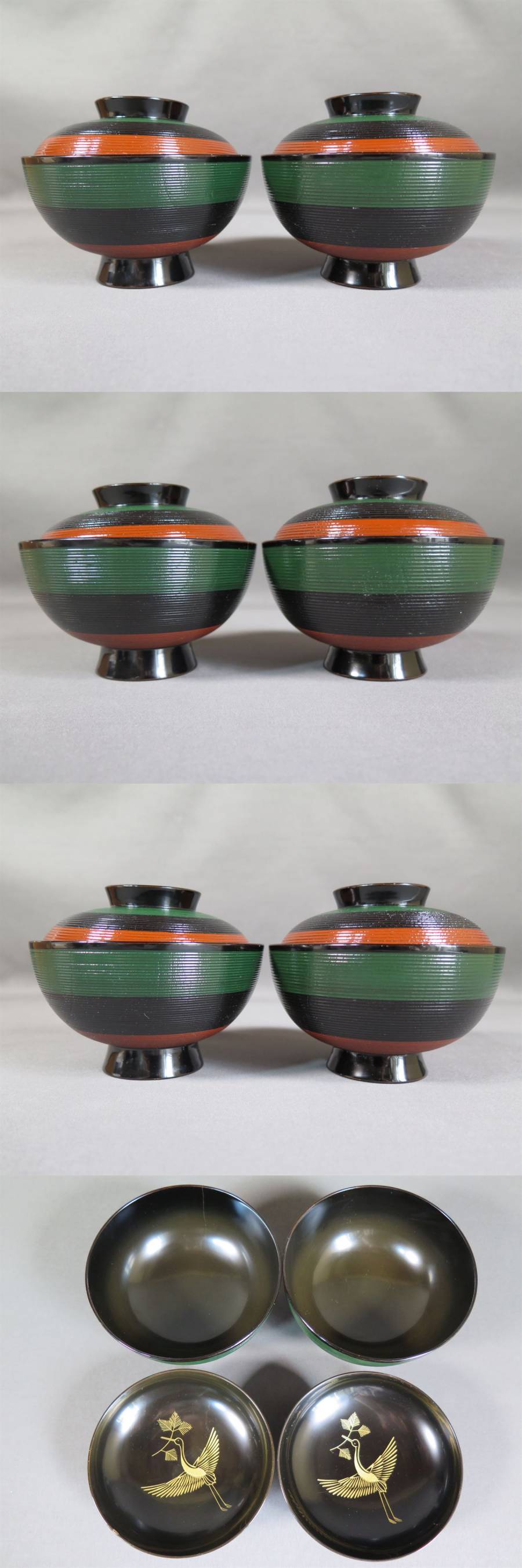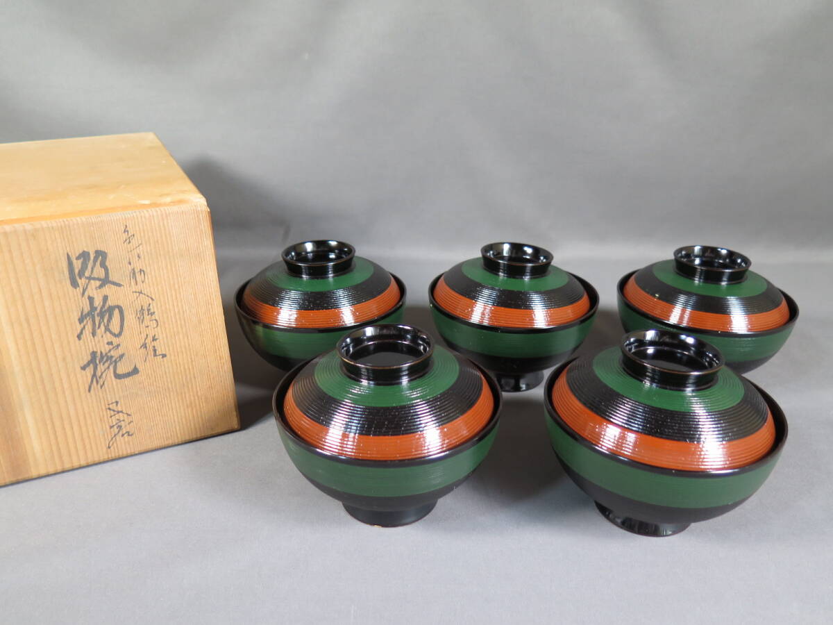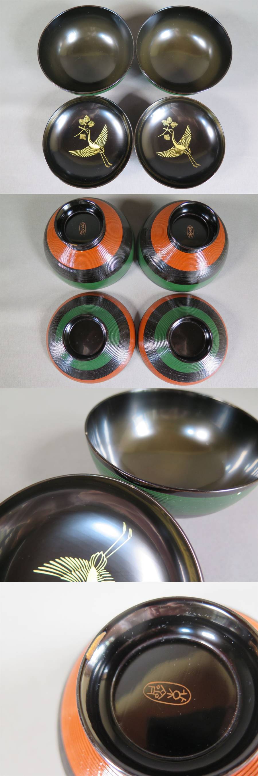- 漆芸 山中塗 瑾齋工房 吸物椀 4客セット 共箱付き お椀 蓋★石川 山中温泉 山中 漆器 創作
