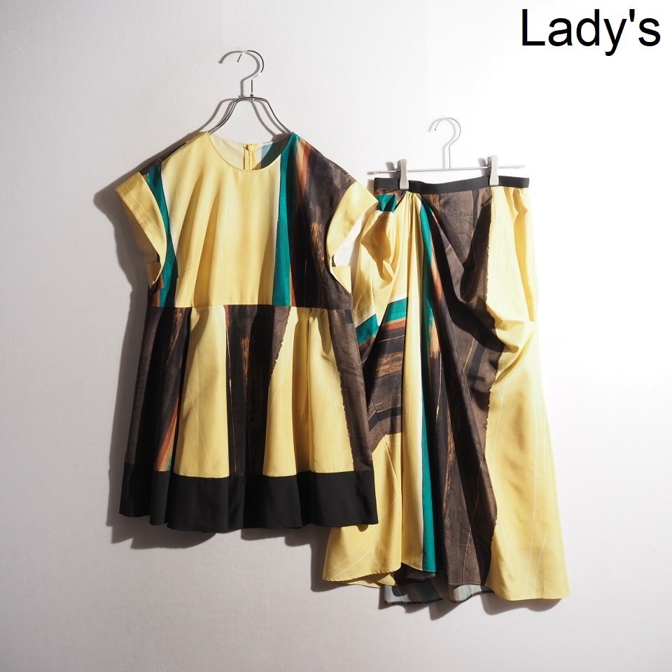 > P9993P ▼ADORE アドーア▼ 25SS ペインティングストライププリント ブラウス スカート セットアップ マルチカラー 38/36 春夏 rb mks