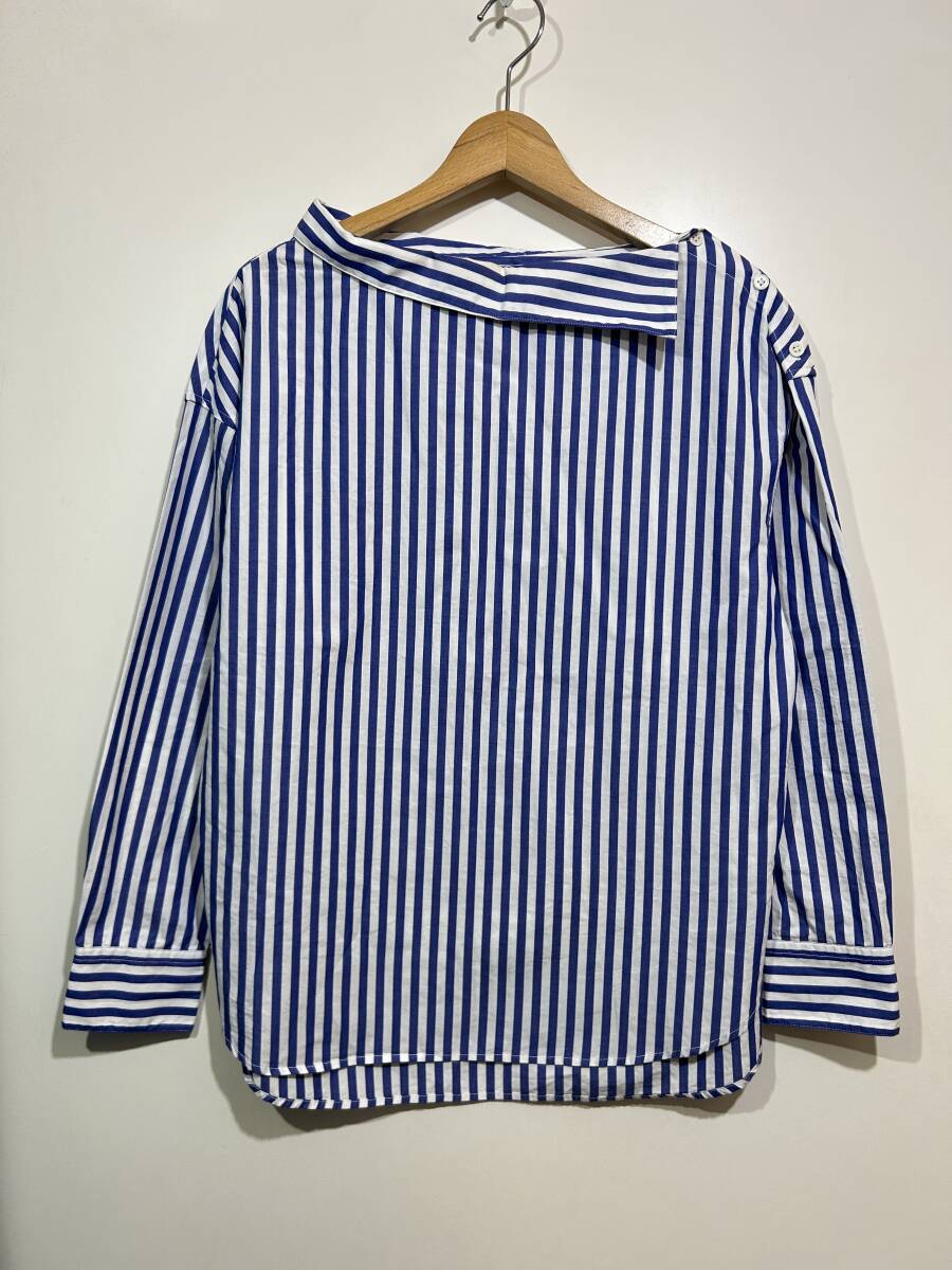 - ★ JOURNAL STANDARD アシンメトリーカラー ストライプシャツ コットン プルオーバー ブラウス ライトブルー ホワイト ワンサイズ ゆったり