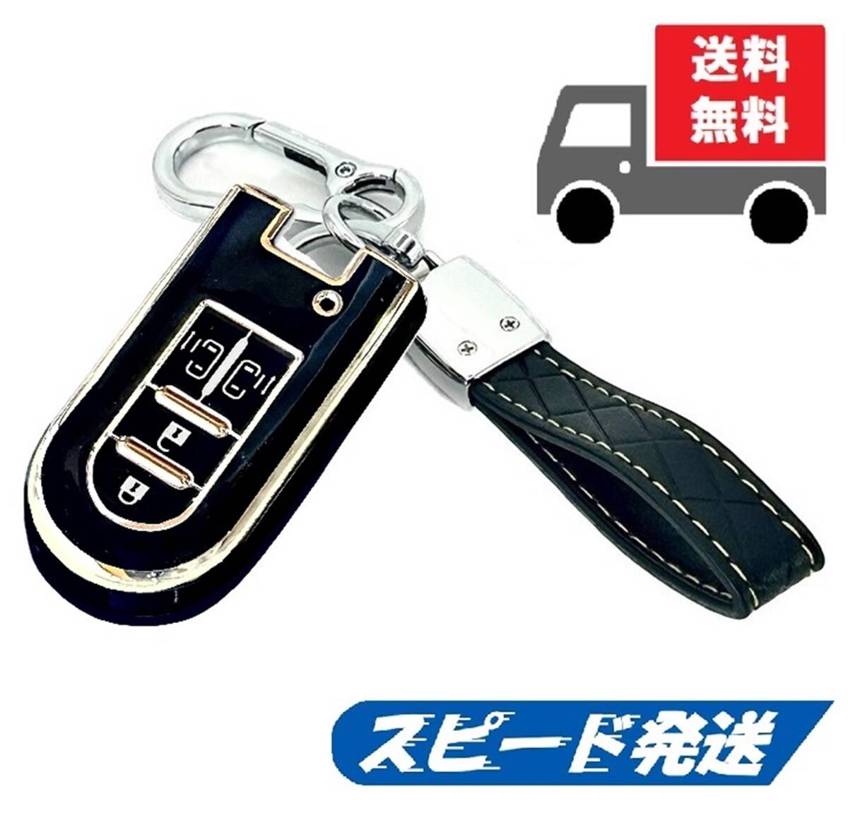 - ★送料無料★キーホルダー付き★ダイハツ★キーケース キーカバー★両サイドスライドドア★ブラック4ボタン★Bタイプ