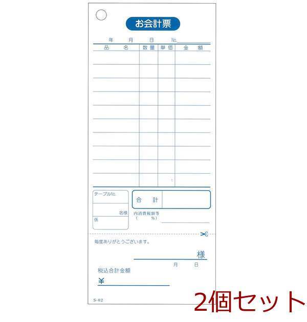 - 会計票 単式伝票 勘定書付 10行 S 02 100枚×10冊入 2セット