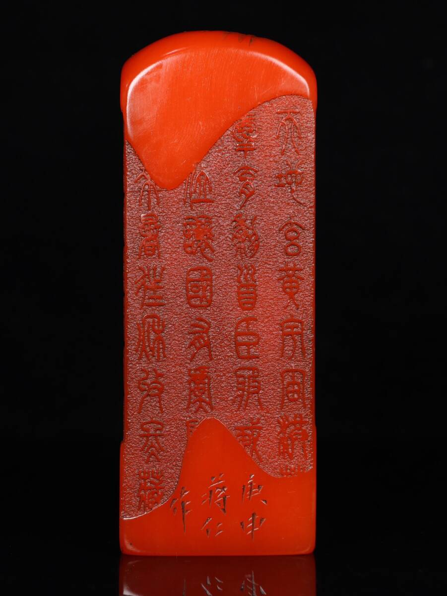 - 蔵友旧蔵出 寿山石 紅田黄石 細密彫 詩詞賦 印章 貴重品 置物 賞物 中国時代美術品